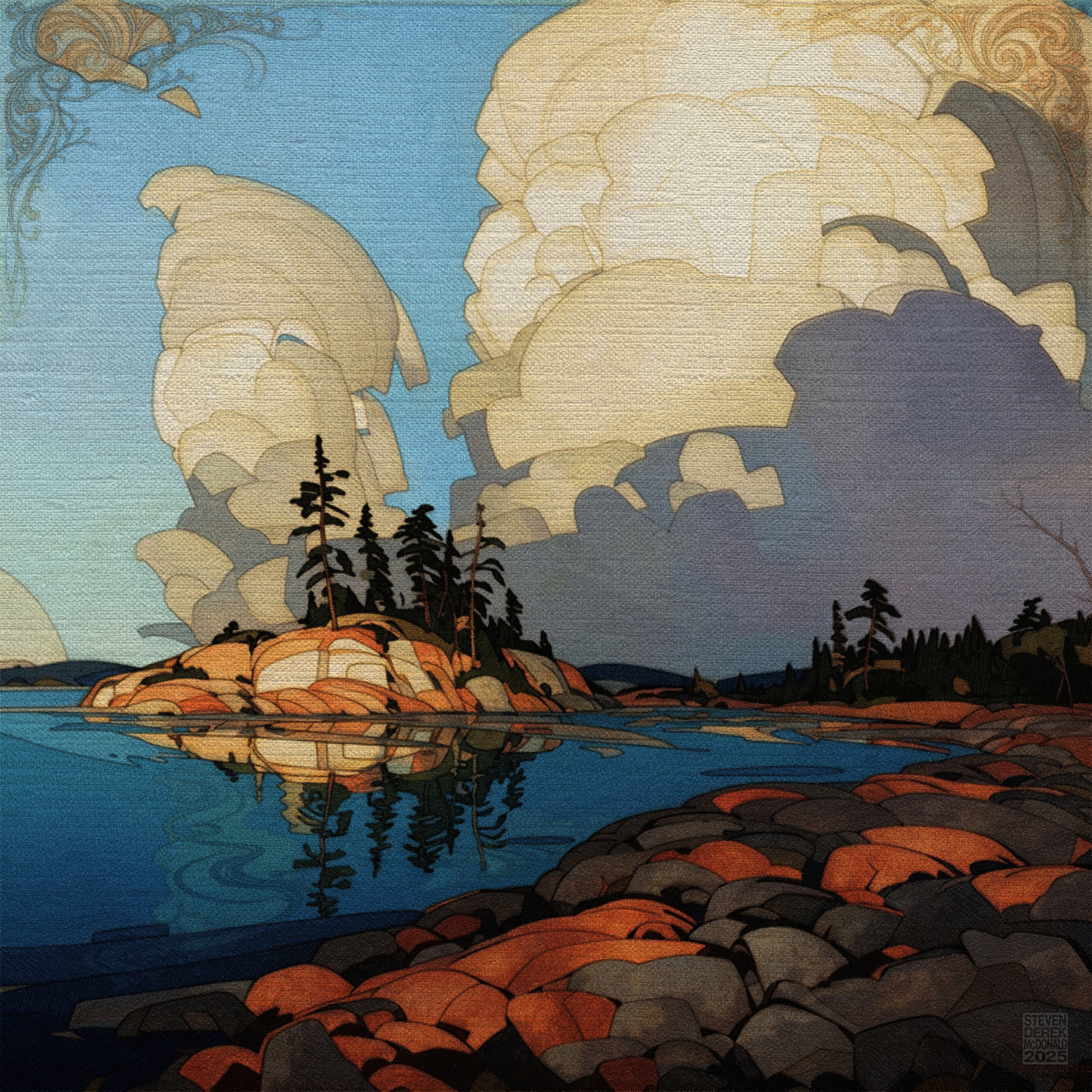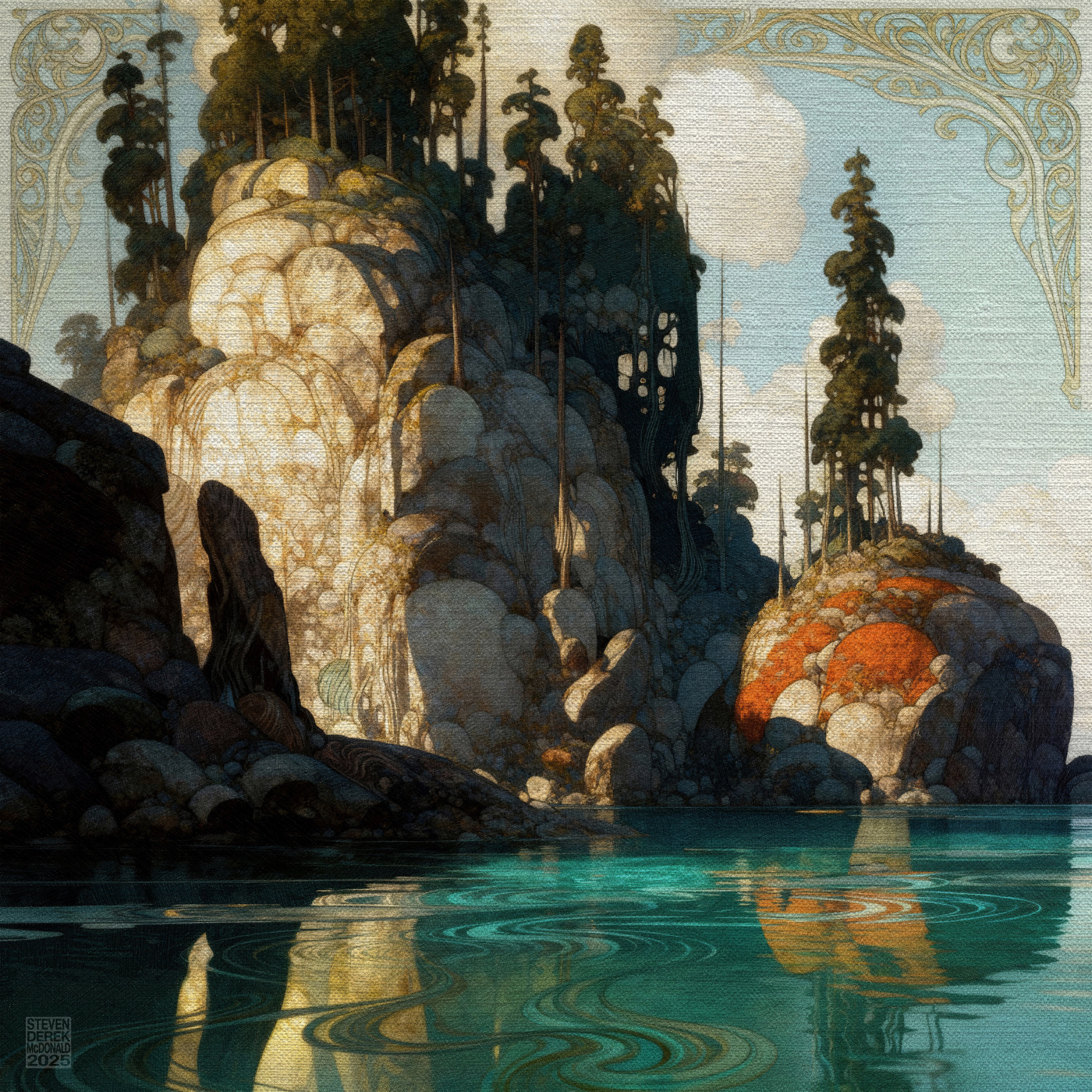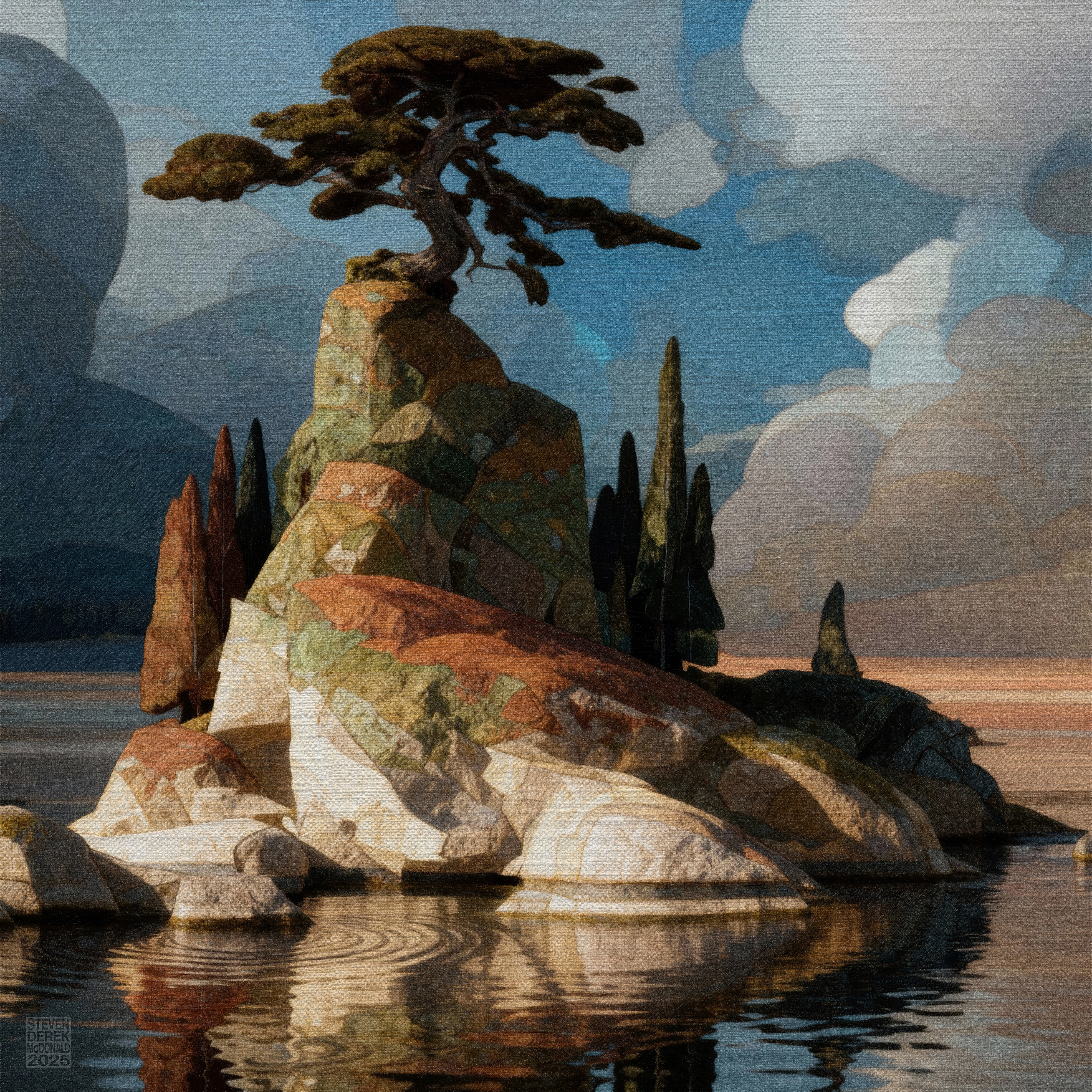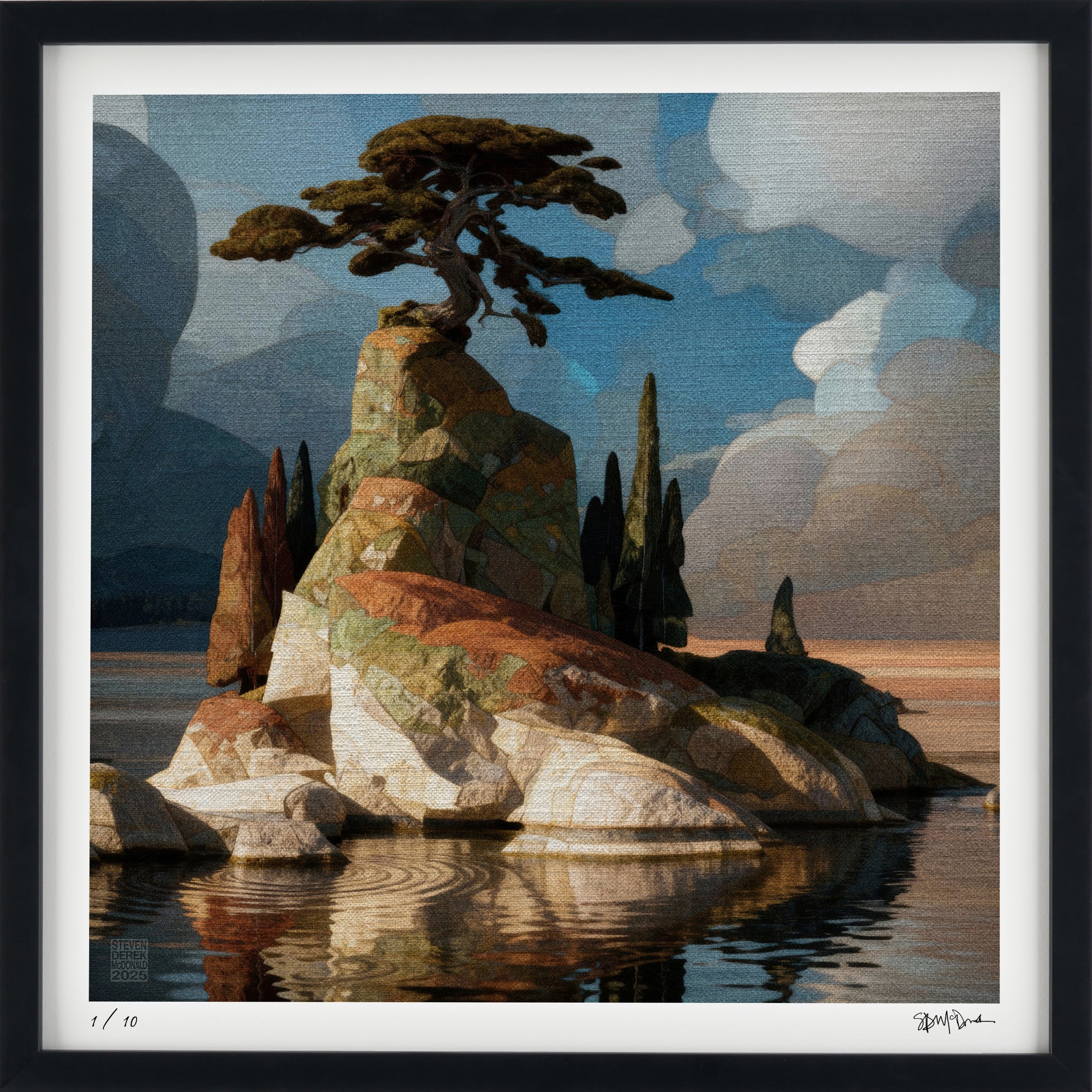 A new collection of prints...Like always, landscapes caught halfway between the real and the imagined. These are places you might have seen in a dream, or just after waking. Nostalgic memory flashes. Each piece explores the edge between solidity and wonder, where light shapes stone and clouds remember their stories. Six scenes, six quiet worlds, one moment of calm before it drifts away again.