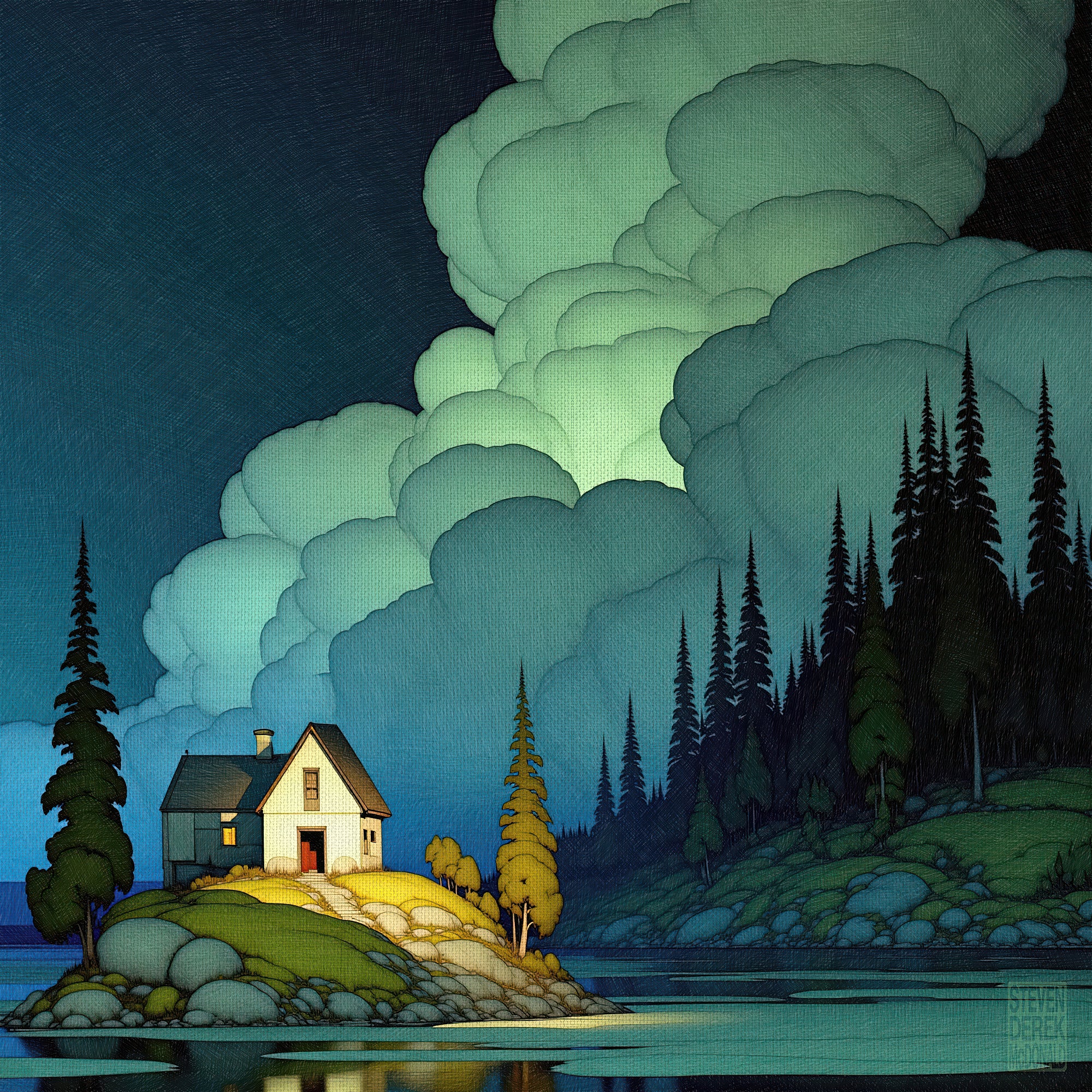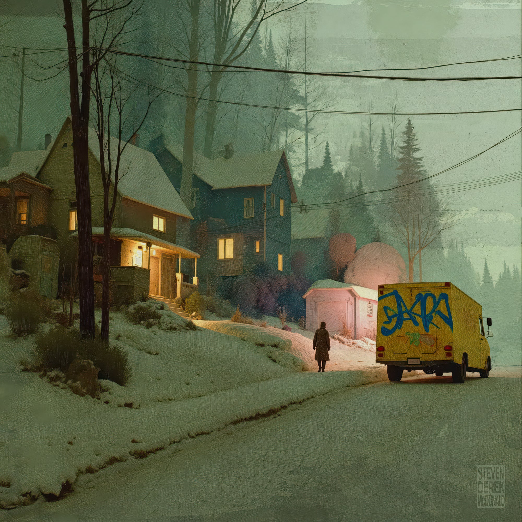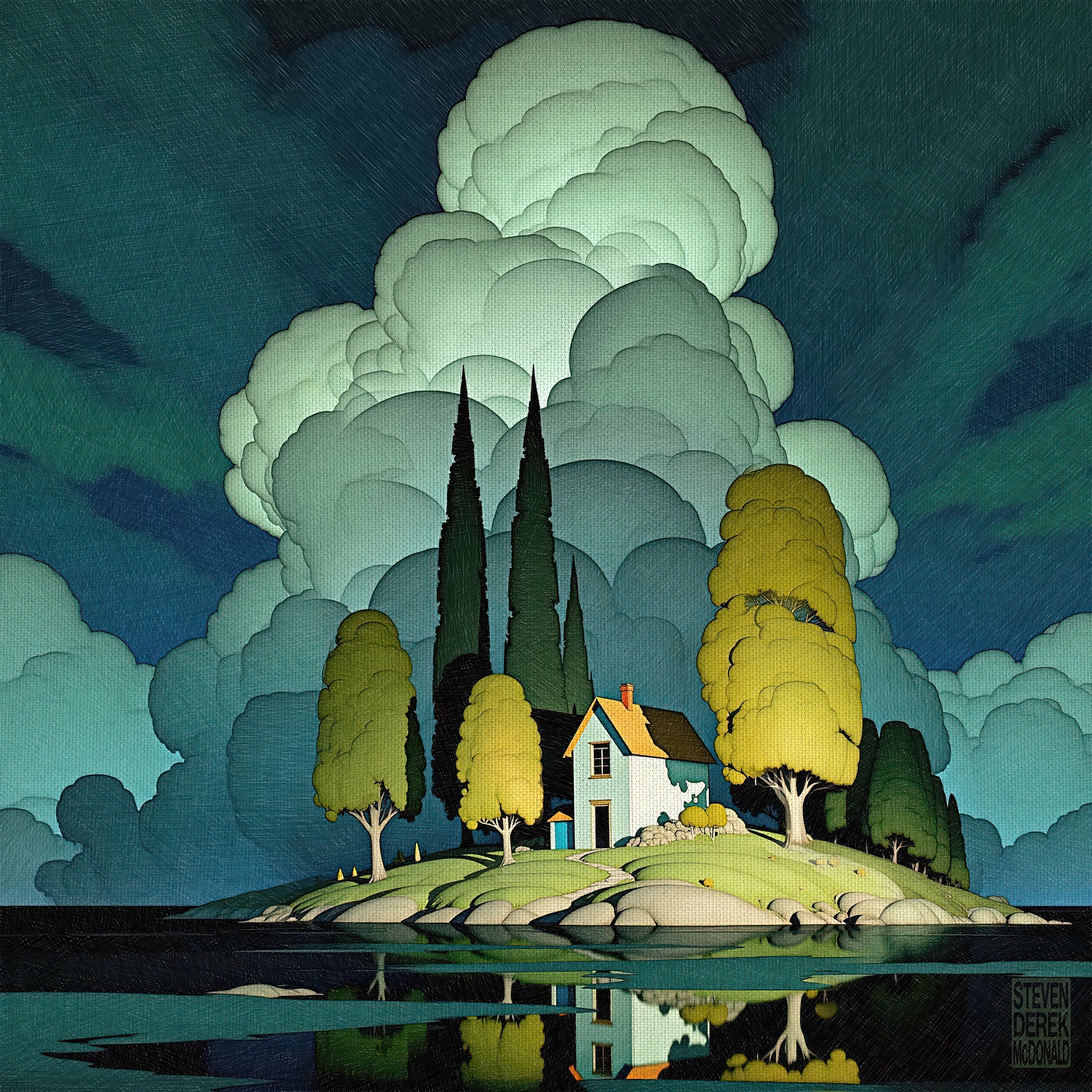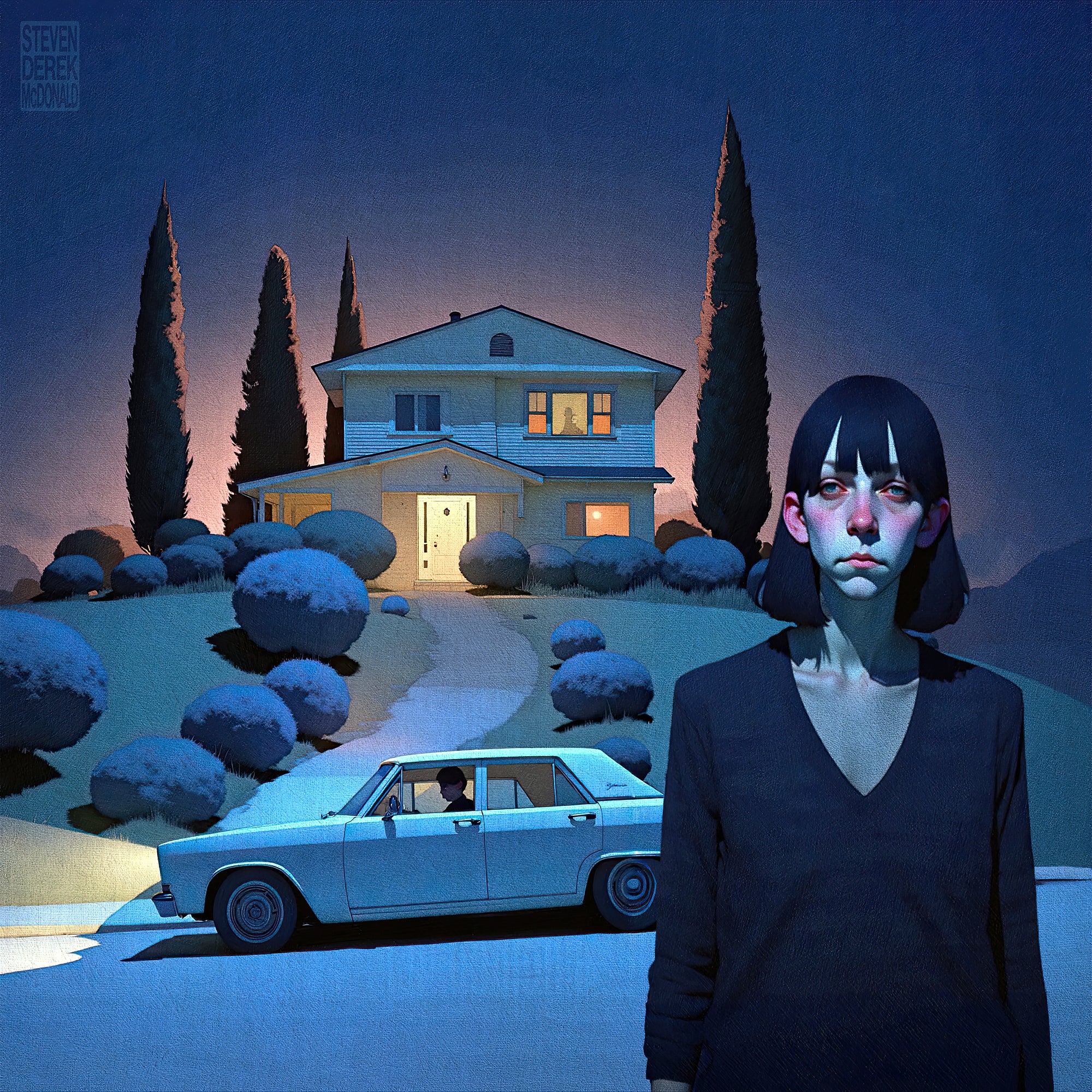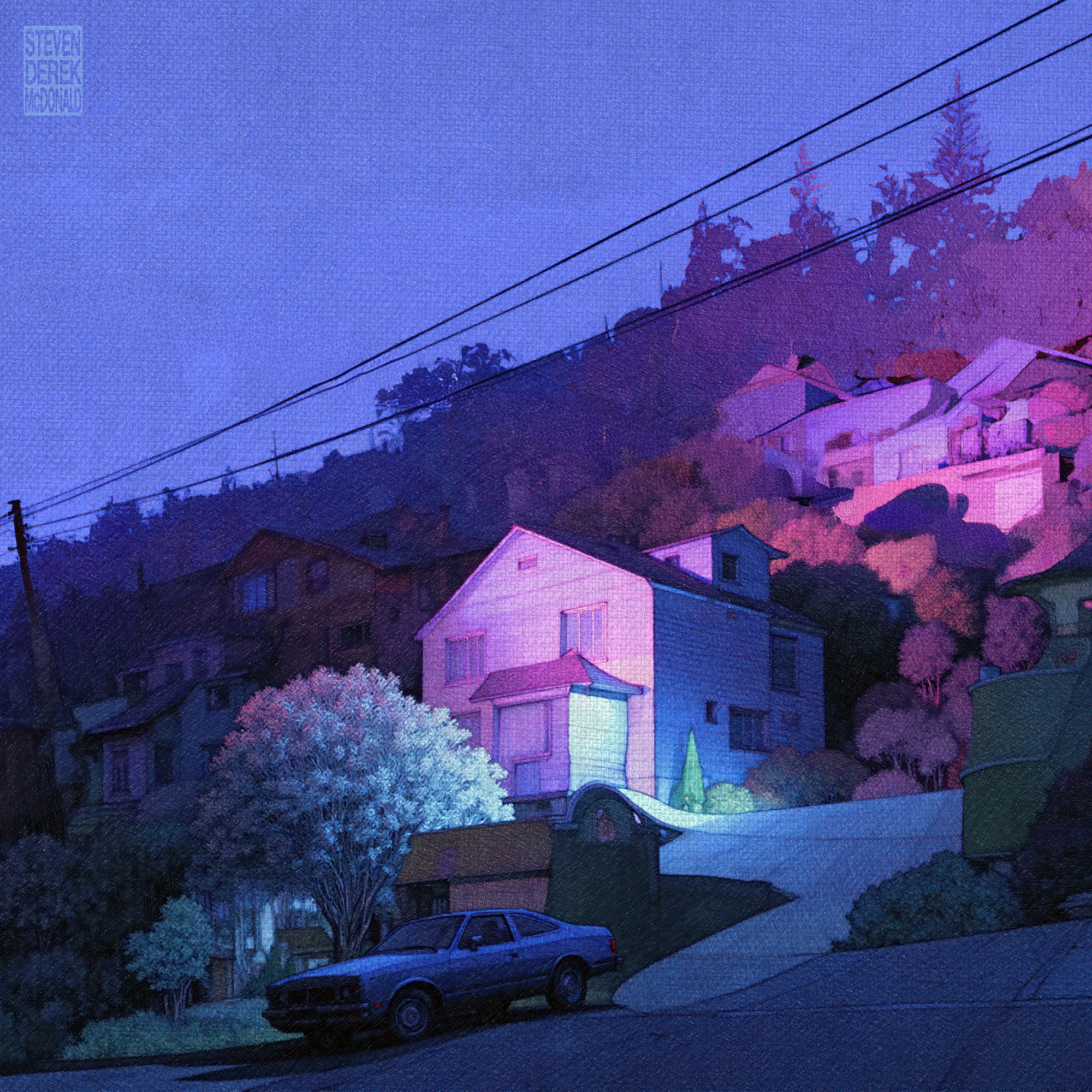 Evening light is the world’s softest special effect, the one that turns plain houses into small myths and quiet streets into stages. In these images, twilight pools in corners, climbs the sides of cypress and telephone poles, and leaves the sky swelling with theatrical clouds like a slow inhale before night. Windows glow like held breath, water keeps a second copy of everything, and the ordinary slips into that liminal blue where memory and reality start sharing a key. It’s the hour when colors get braver, shadows get longer, and even a parked car looks like it has a secret appointment.